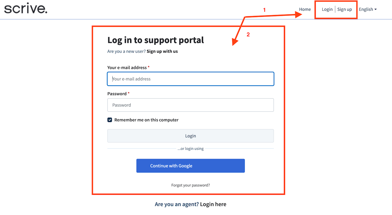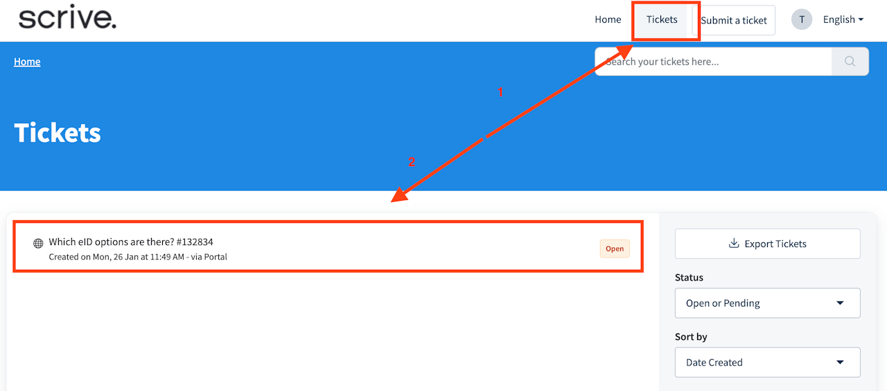 Als Scrive-Kunde können Sie uns am effizientesten über unser Support-Portal erreichen. Hier können Sie für alle Fragen oder Probleme, auf die Sie stoßen, ein Ticket eröffnen und den Fortschritt Ihrer Anfrage in Echtzeit verfolgen.