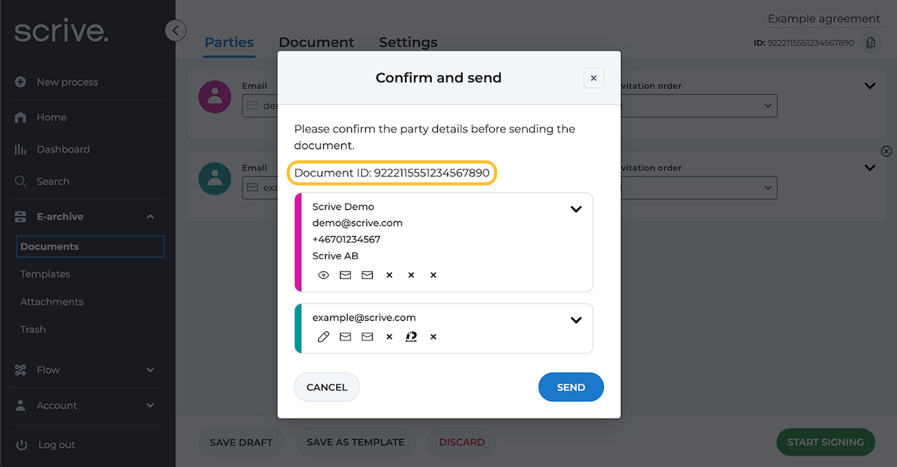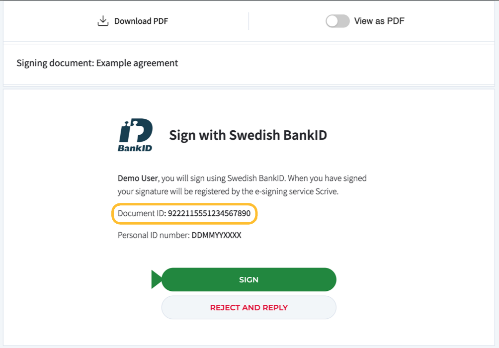 Während des Signierungsprozesses können Sie die DokumentID auch auf der Prozessseite finden.