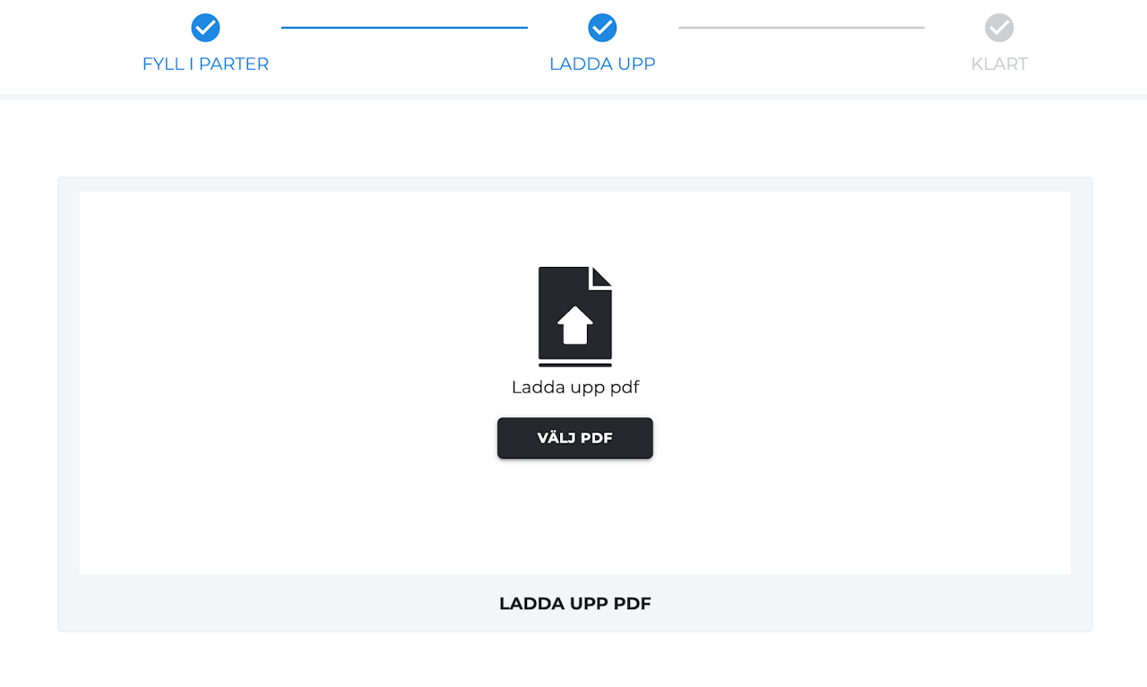 Schritt 3 : Geben Sie zunächst Ihren eigenen Namen, Ihre E-Mail-Adresse und Ihre Handynummer in die erste Zeile ein. Geben Sie dann die E-Mail-Adresse oder Handynummer aller anderen Parteien ein. Um fortzufahren, klicken Sie unten auf der Seite auf „Gå vidare“.