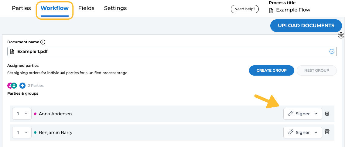 Parteirollen für Flow-Dokumente