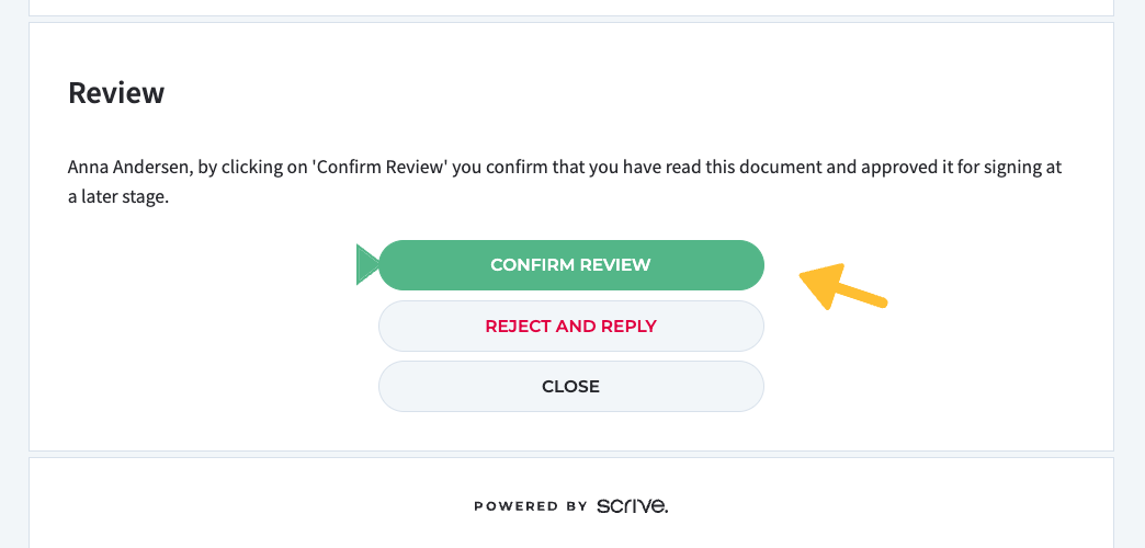 Wenn Sie die Dokumente durchgehen, die Sie unterzeichnen sollen, schließen Sie jedes einzelne ab, indem Sie auf „Überprüfung bestätigen“ klicken. Damit bestätigen Sie, dass Sie den Inhalt des Dokuments überprüft und zur späteren Unterzeichnung freigegeben haben. Die Überprüfung des Inhalts aller Dokumente ist erforderlich, um mit der Unterzeichnung fortfahren zu können.