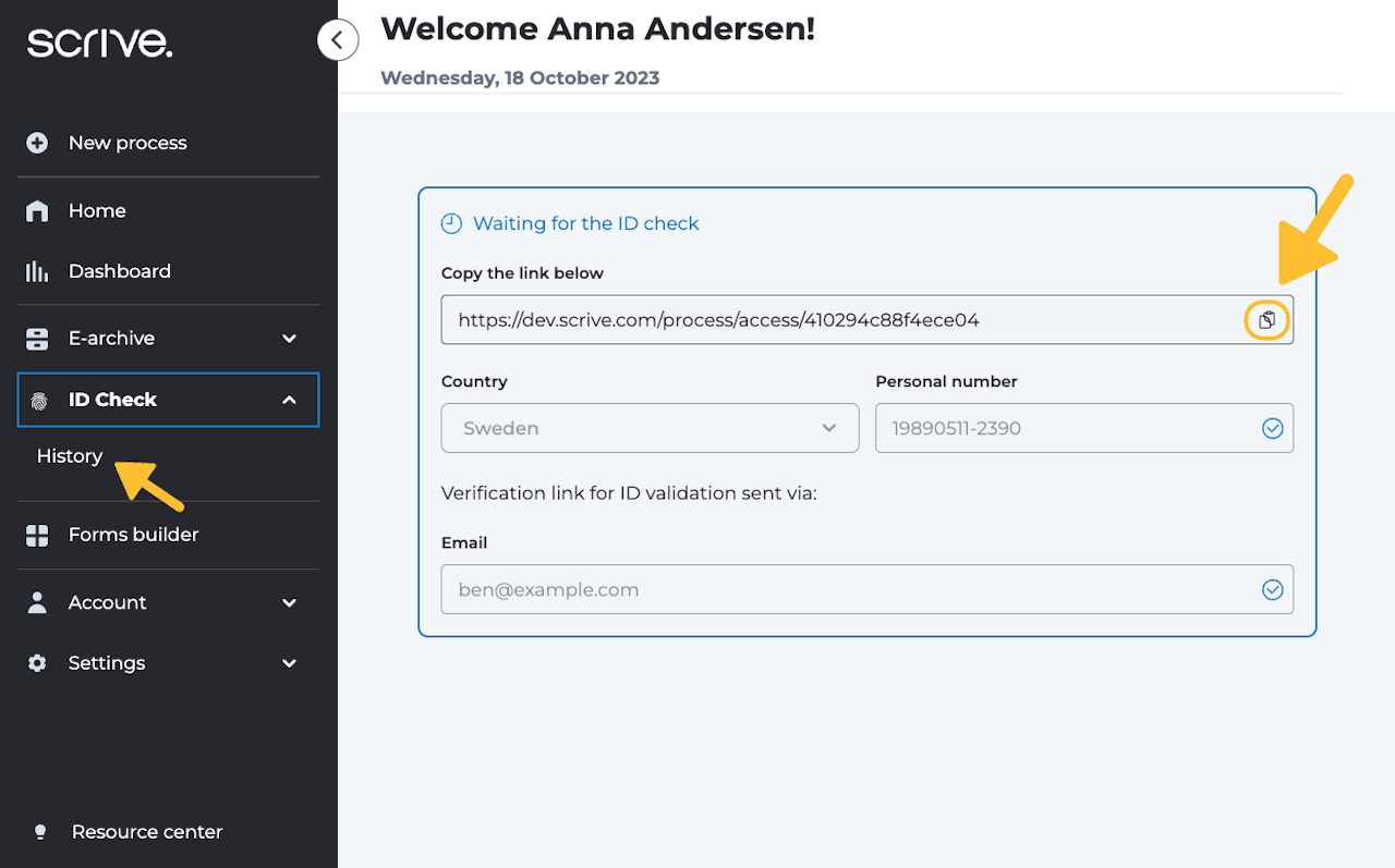 To access the identity verification link for an ID check you've initiated, follow these steps: