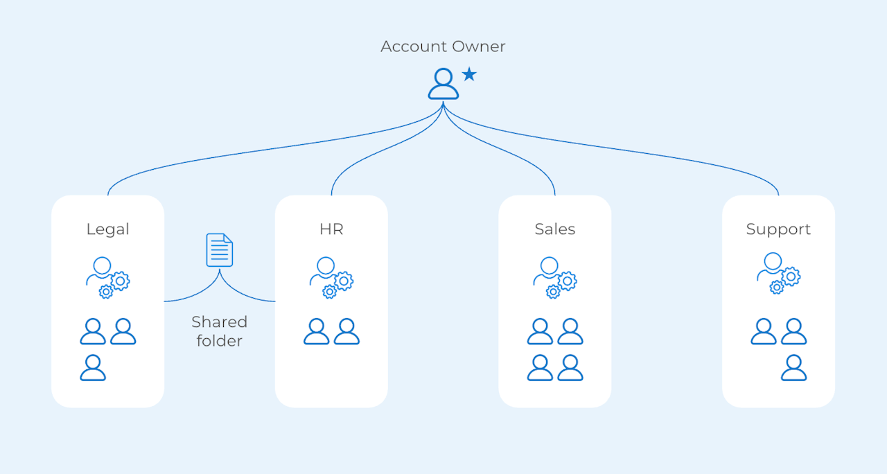If needed, Scrive can help you set up a folder structure that allows one user group to access documents and templates from another group.