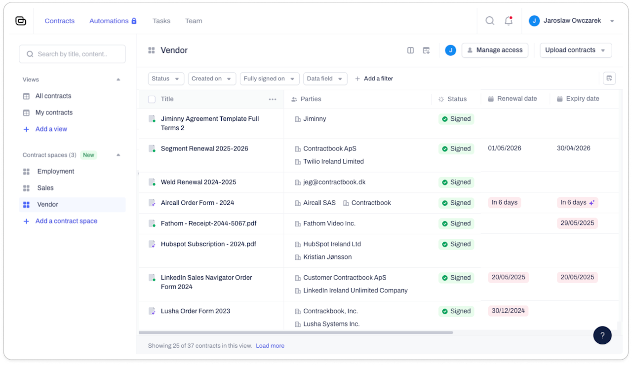 Contractbook is for organizing and managing signed contracts.