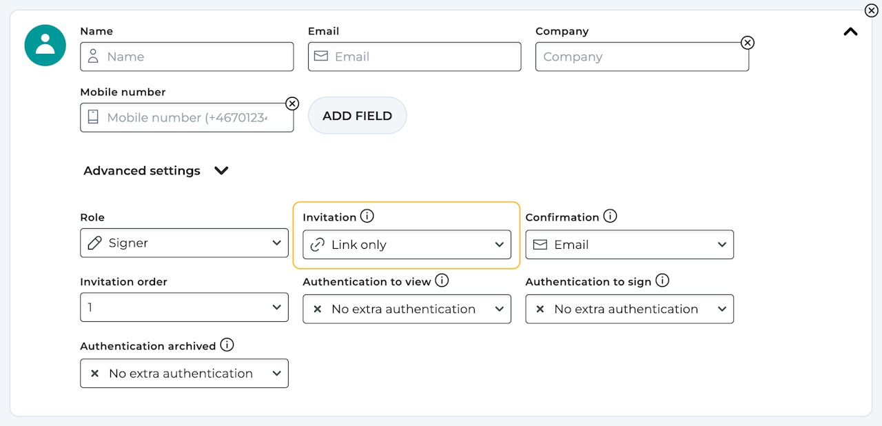 Shareable links enable you to start a signing process without knowing the identity of the signing party in advance. This flexibility allows you to share your signing workflow publicly, for example, by integrating the shareable link into your website.