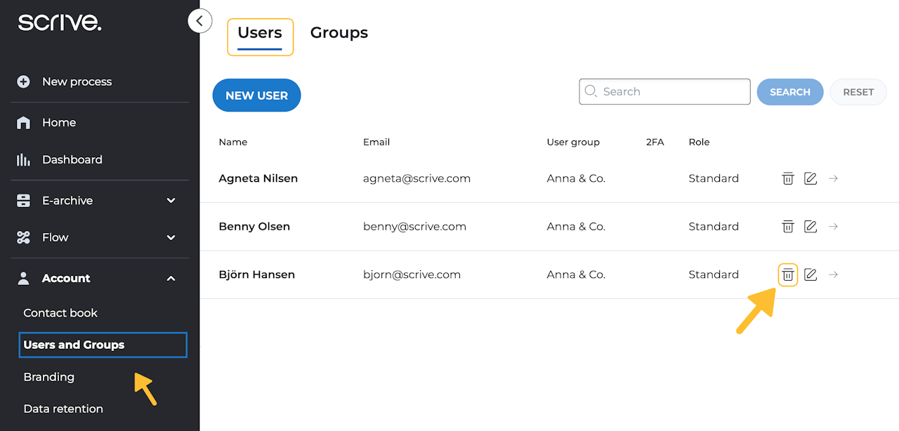 If the option to delete a user is greyed out, it signifies that the user is currently involved in one or more ongoing document processes. To proceed with user deletion, consider the following options: