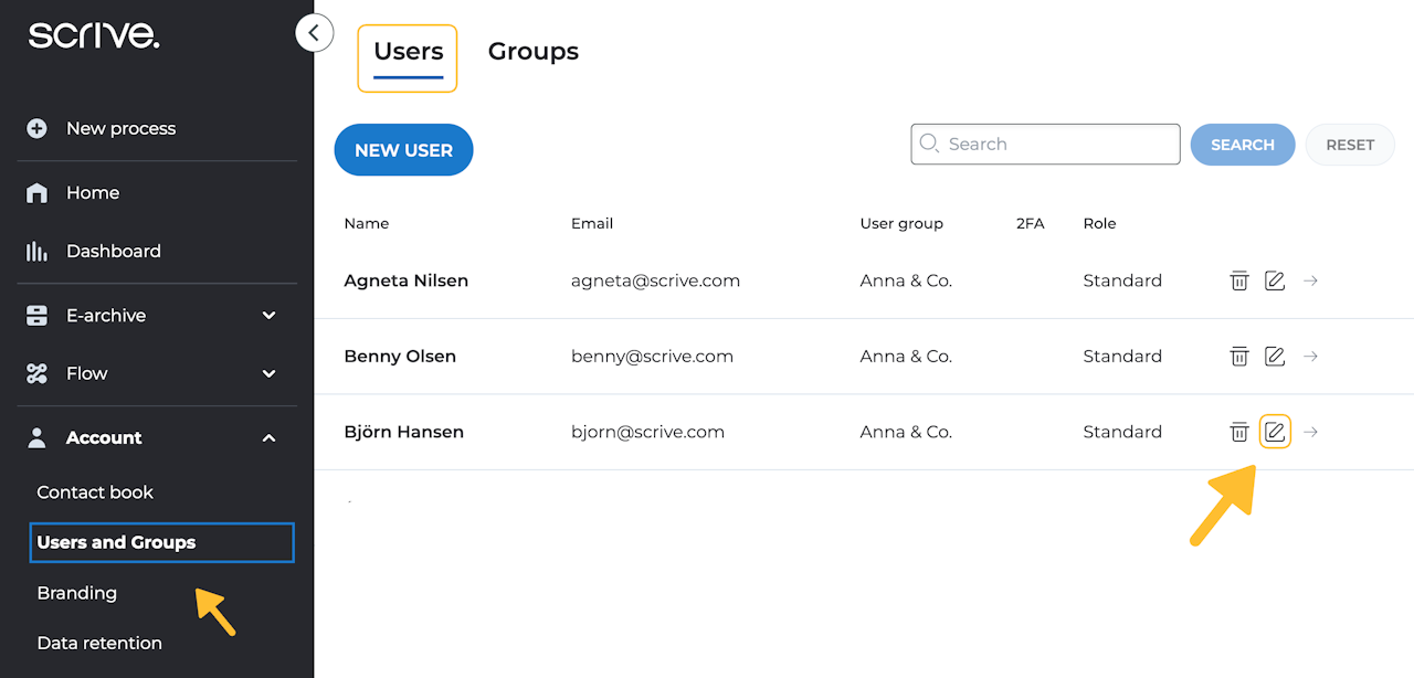 Once you've found the user, click on their name or the edit symbol to the right.