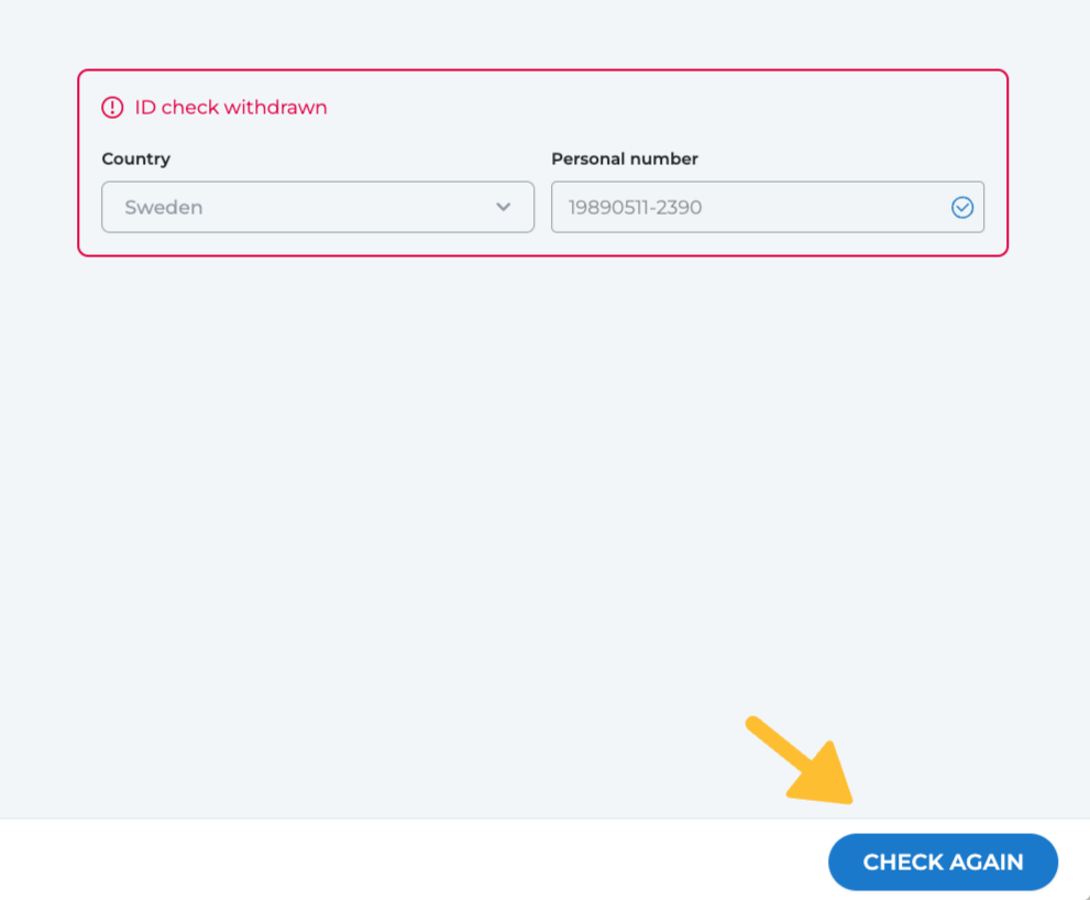 Om du bestämmer dig för att starta om verifieringsprocessen efter att ha återkallat den, kan du initiera en ny kontroll genom att klicka på "Check again" på processidan (som visas i den andra bilden) eller helt enkelt börja om med en ny process.