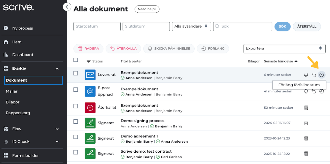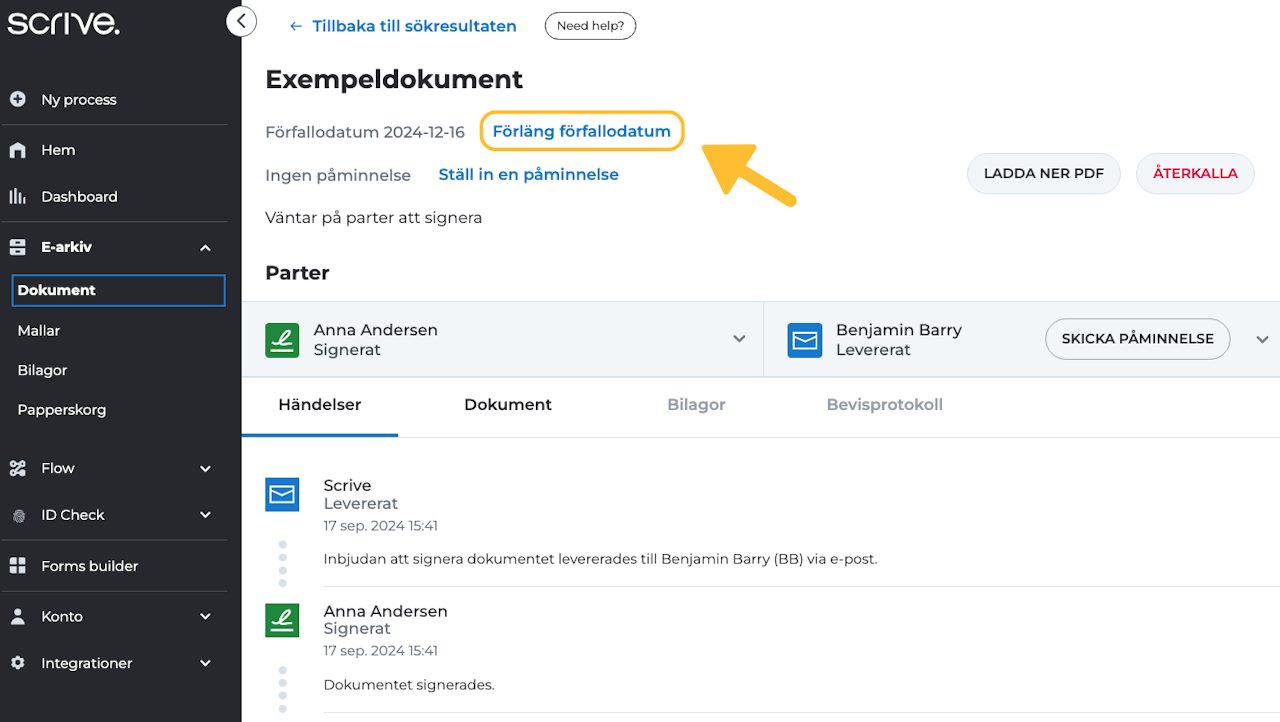 Förlänga förfallodatum för ett dokument